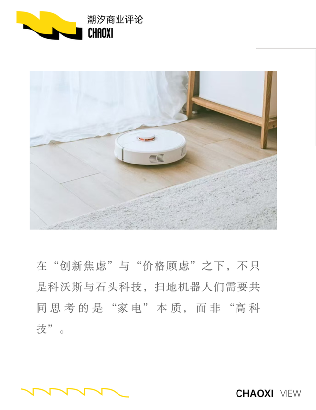 现阶段,在“创新焦虑”与“价格顾虑”之下,不只是科沃斯与石头科技,扫地机器人们需要共同思考的是“家电”本质,而非“高科技”。